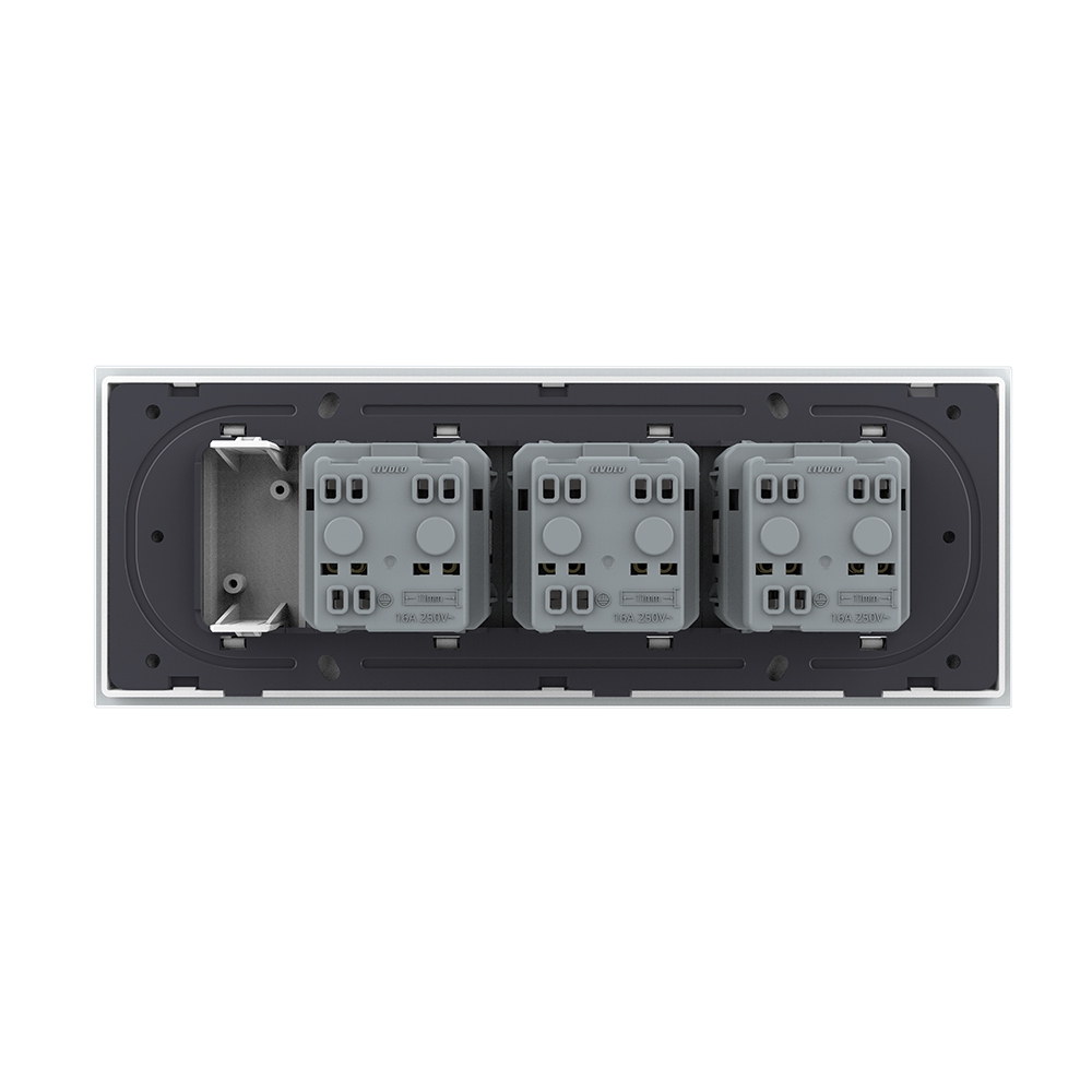 Priza tripla cu blank Livolo cu rama din sticla 6/7 module – standard Italian
