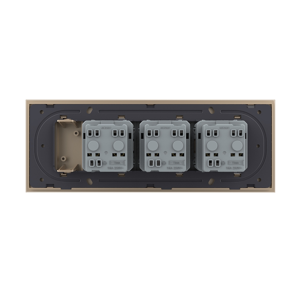 Priza tripla cu blank Livolo cu rama din sticla 6/7 module – standard Italian