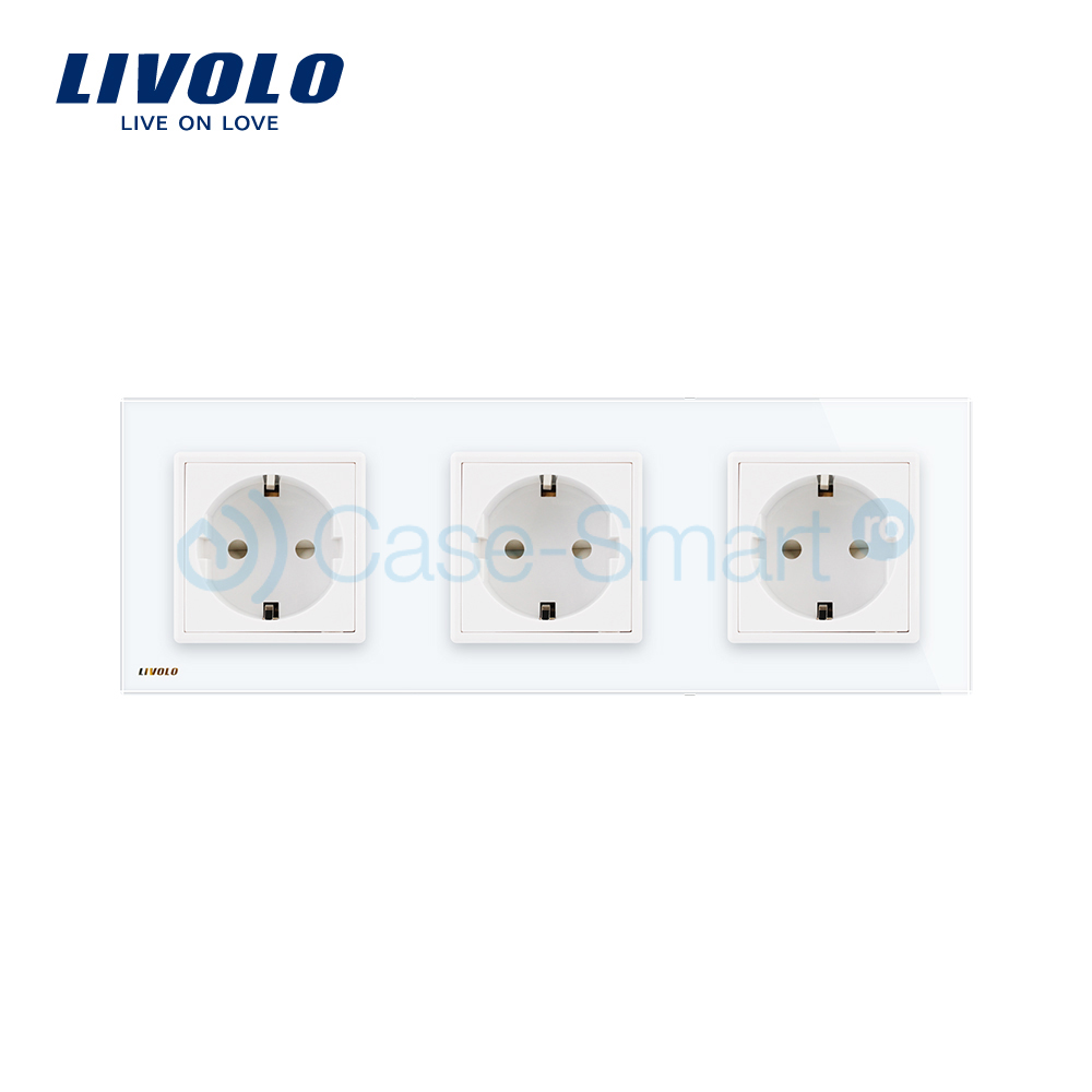 Priza tripla Livolo cu rama din sticla crystal termorezistenta contine 3 prize electrice de perete, ofera eleganta casei tale cu produse de calitate .