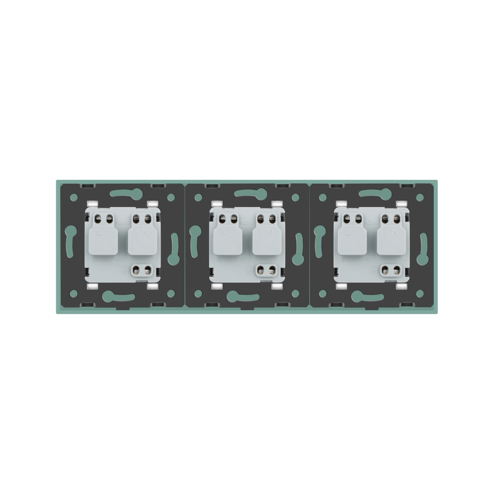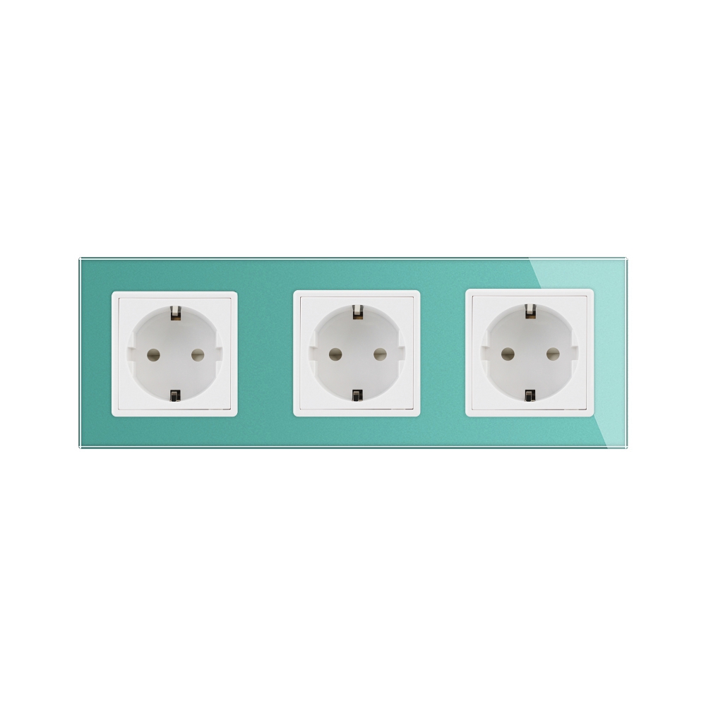 Priza tripla Livolo cu rama din sticla crystal termorezistenta contine 3 prize electrice de perete, ofera eleganta casei tale cu produse de calitate .