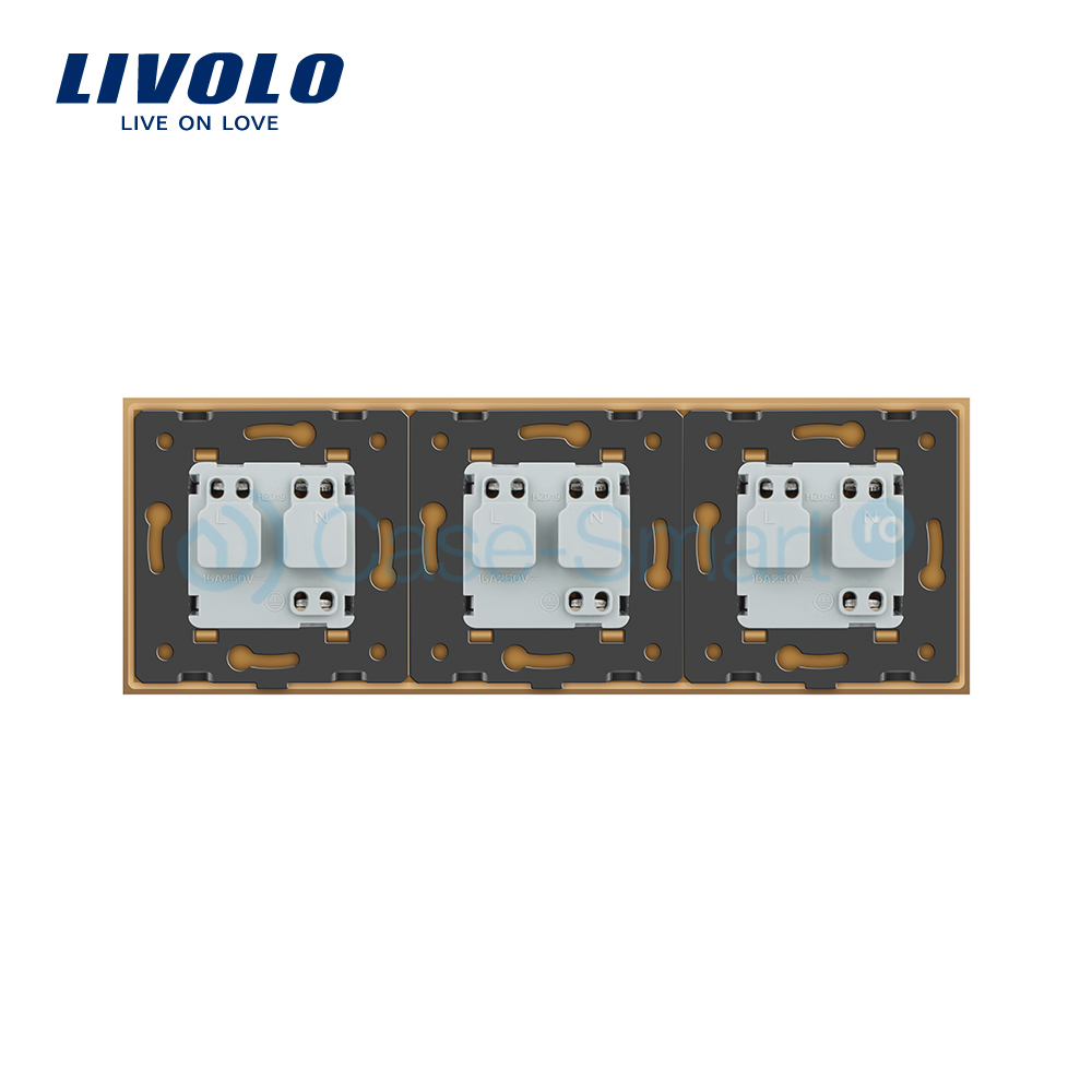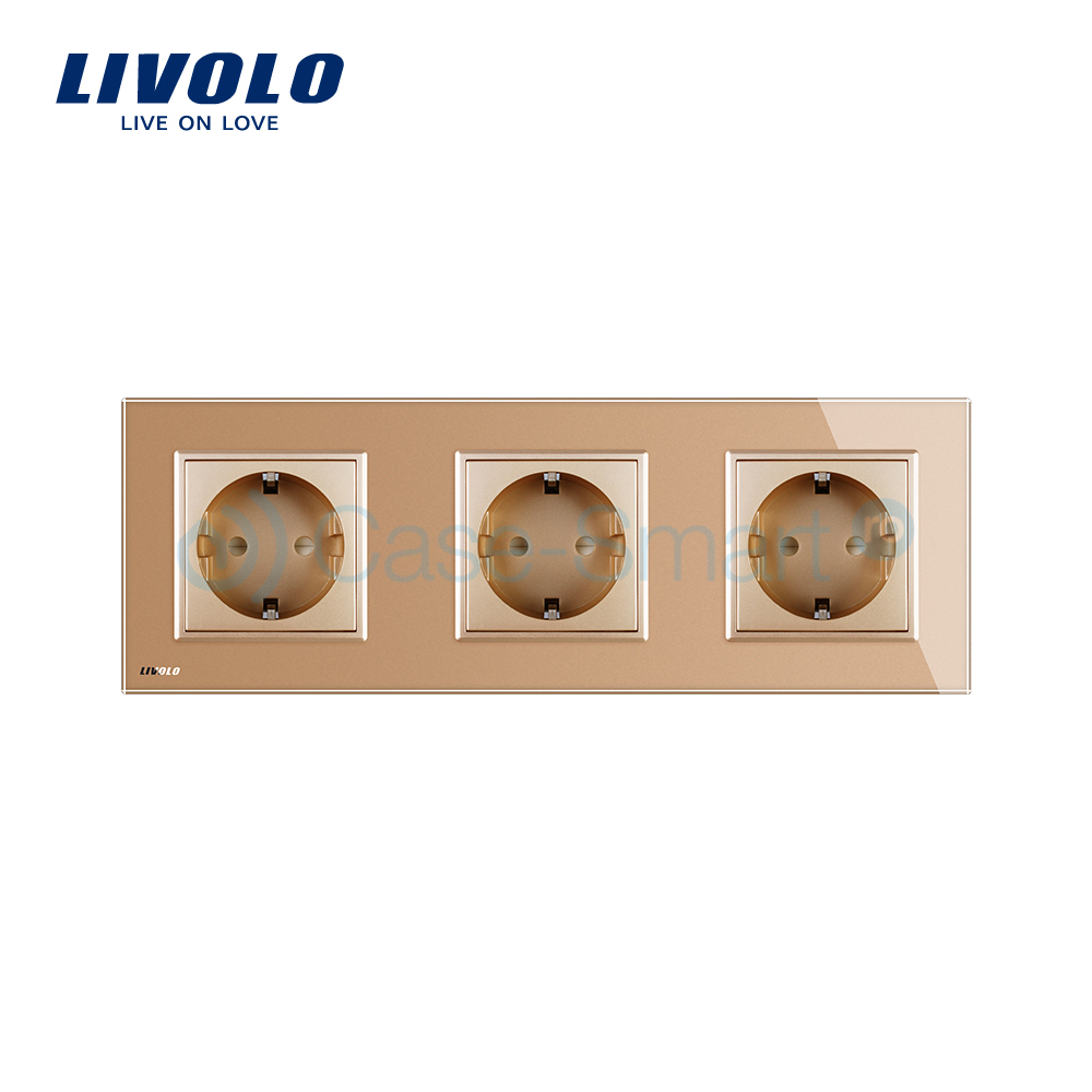 Priza tripla Livolo cu rama din sticla crystal termorezistenta contine 3 prize electrice de perete, ofera eleganta casei tale cu produse de calitate .