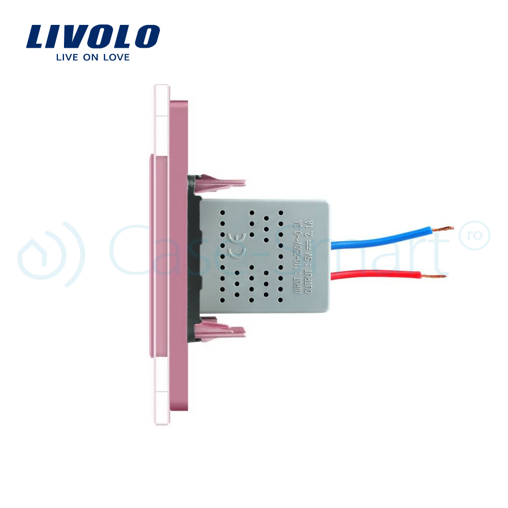 Priza USB Livolo cu rama din sticla