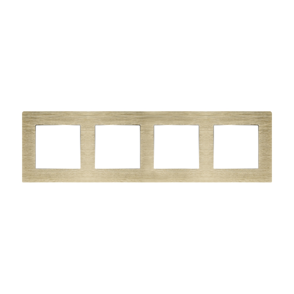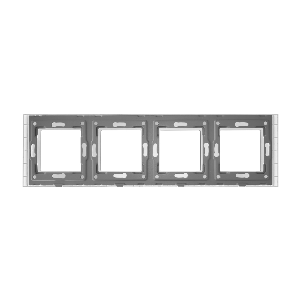 Rama cvadrupla Luxion, din aluminiu, compatibila cu panourile mini ale intrerupatoarelor Luxion, cu modulele mecanice Luxion, cu prizele Luxion cat si cu cele media: TV, TV satelit, telefon, audio, USB, internet, HDMI.