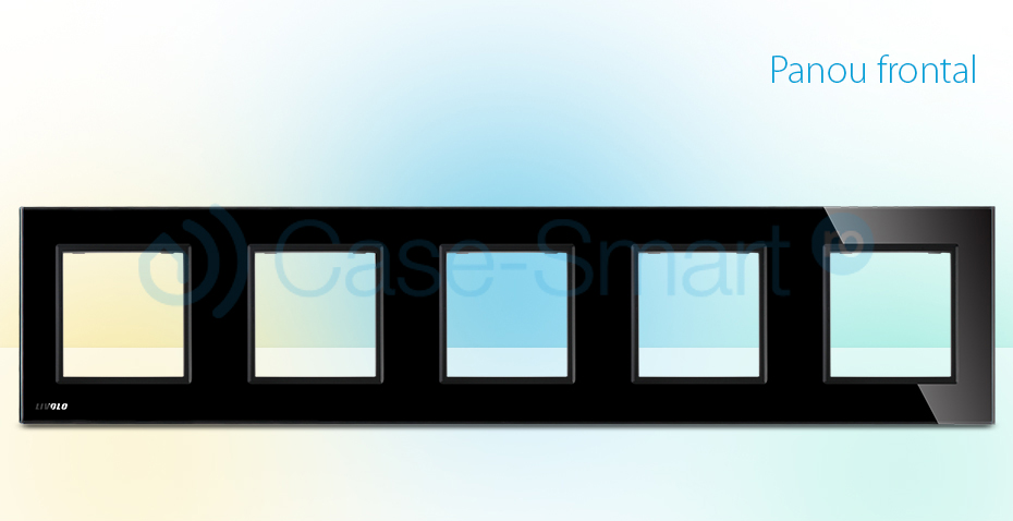 Rama priza cvintuplu Livolo, din sticla – produse premium, calitate dusa la extrem, pot fi montate atat prize simple cat si prize TV, telefon, audio, internet.