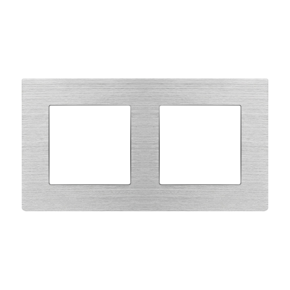Rama dubla Luxion, din aluminiu, compatibila cu panourile mini ale intrerupatoarelor Luxion, cu modulele mecanice Luxion, cu prizele Luxion cat si cu cele media: TV, TV satelit, telefon, audio, USB, internet, HDMI.
