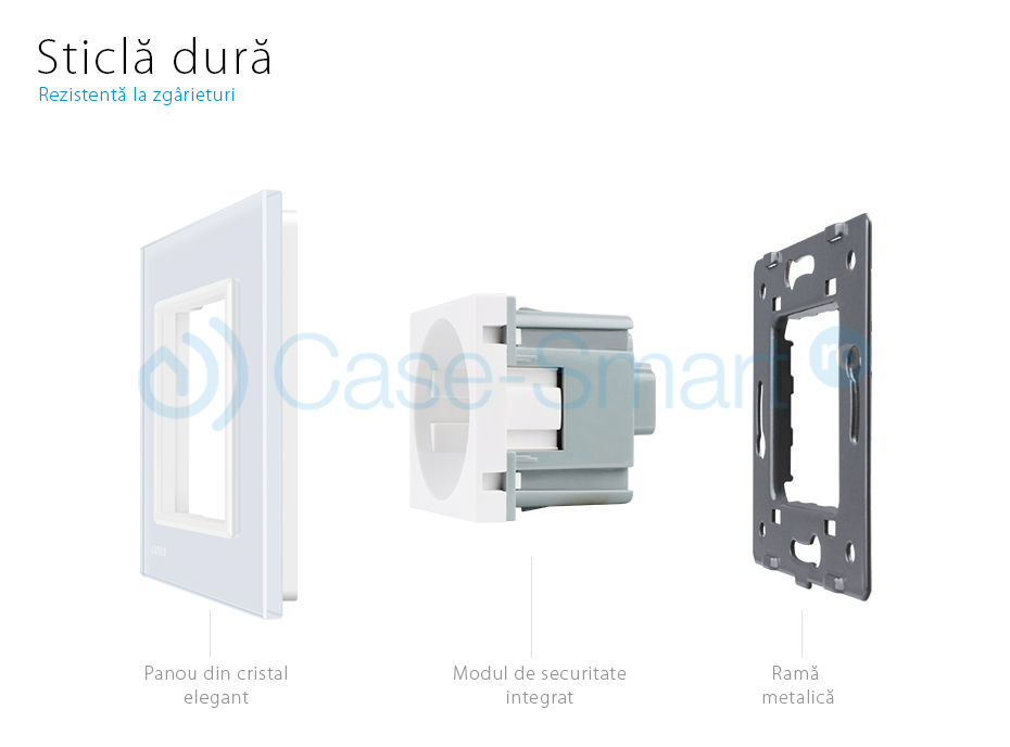 Rama priza simpla Livolo, din sticla crystal termorezistenta, compatibila cu prizele Livolo cat si cu cele media: TV, telefon, audio, USB, internet, VGA.