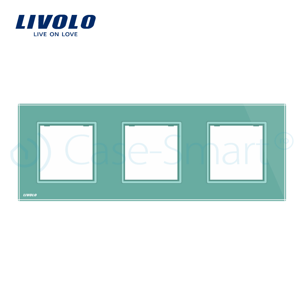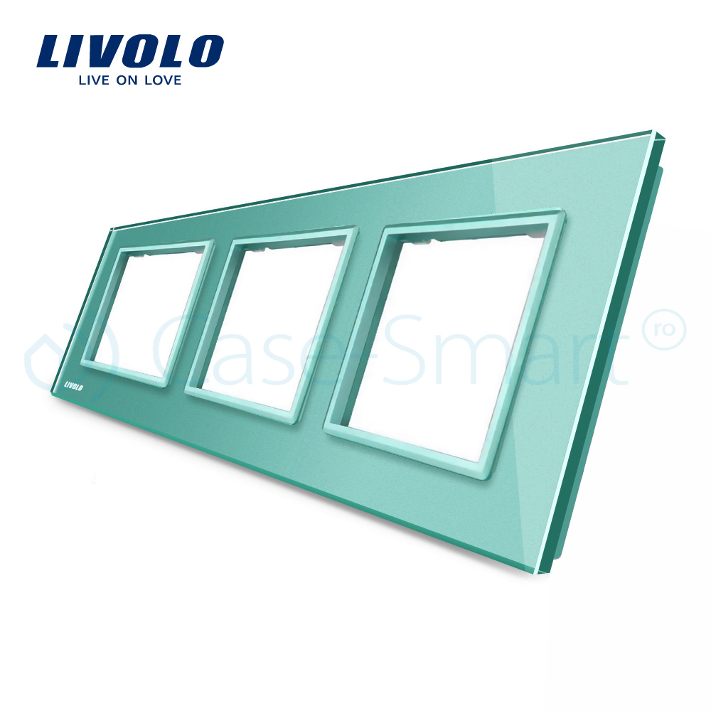 Rama priza tripla Livolo, din sticla – produse premium, calitate dusa la extrem, pot fi montate atat prize simple cat si prize TV, telefon,audio, internet.