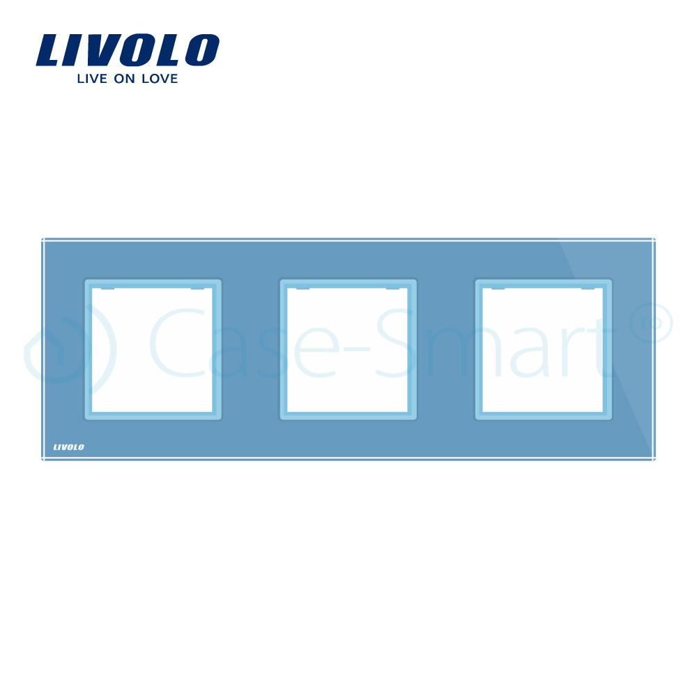 Rama priza tripla Livolo, din sticla – produse premium, calitate dusa la extrem, pot fi montate atat prize simple cat si prize TV, telefon,audio, internet.