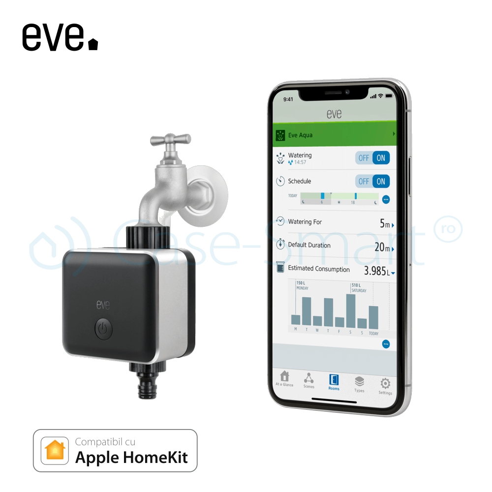 Sistem smart pentru automatizarea irigatiei Eve-aqua, compatibil cu Apple Home Kit