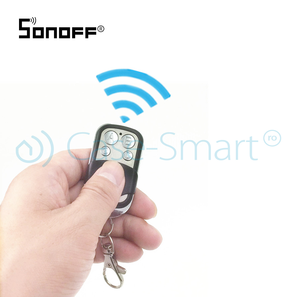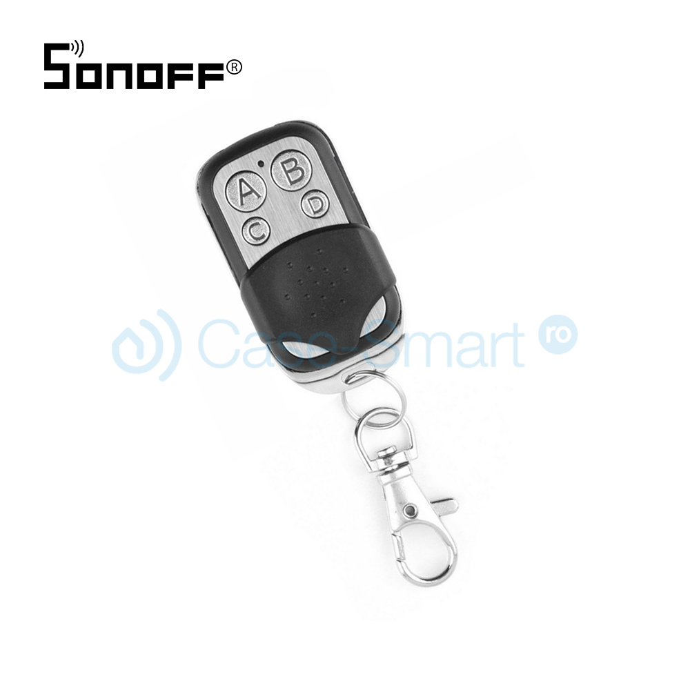Telecomanda wireless SONOFF RF, cu 4 butoane. Aceasta telecomanda se poate folosi cu intrerupatoarele Sonoff cu frecventa de 433 Mhz sau cu releele Sonoff. Poate controla pana la 4 relee independente sau 4 pozitii de intrerupator.