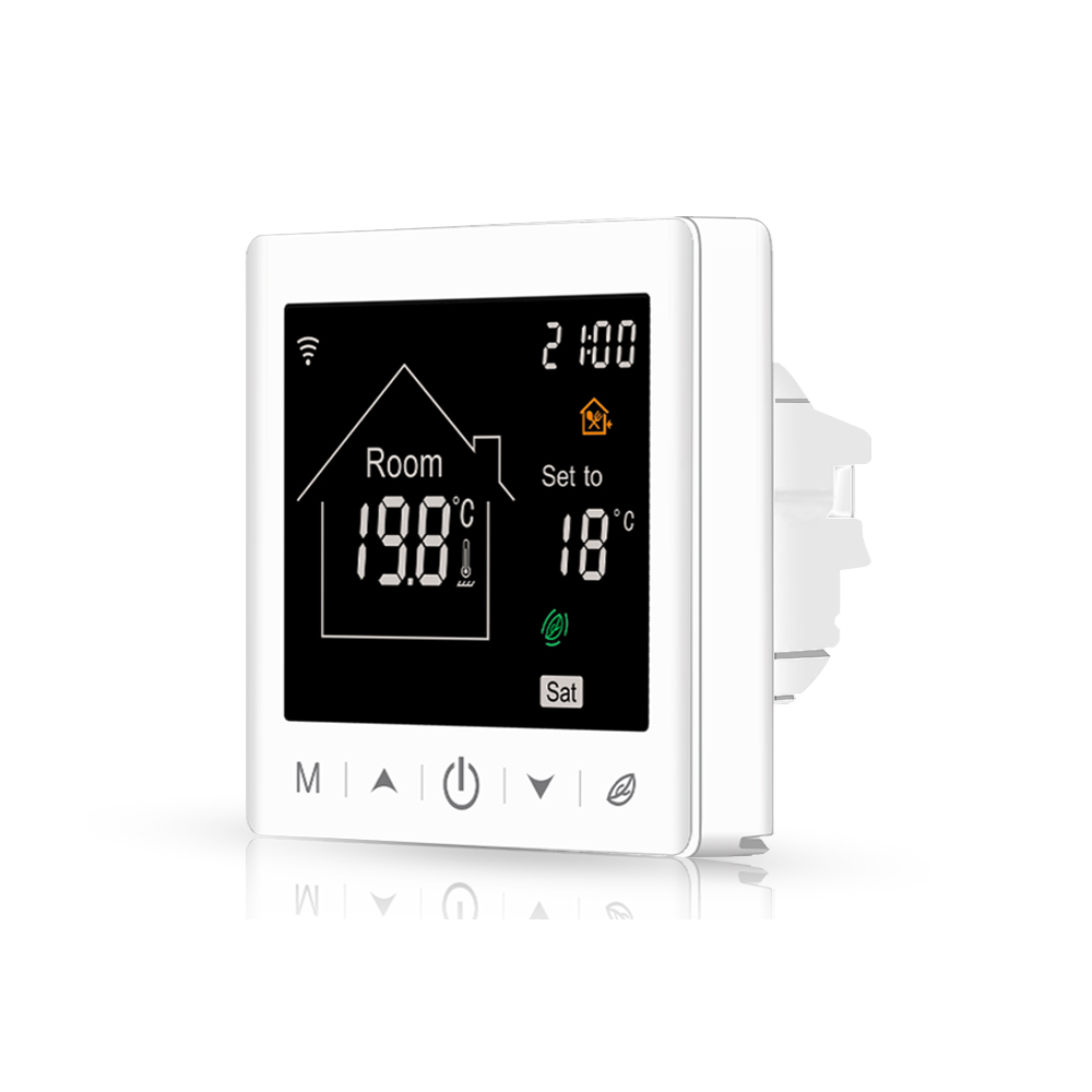 Termostatul Wi-Fi BeOK TR9B-WIFI-WPB poate fi utilizat direct prin interfata tactila (touchscreen) sau poti controla temperatura si functiile termostatului de pe smartphone cu ajutorul aplicatiei “Smart Life” disponibila in Google Play / App Store. Termostatul poate fi programat dupa bunul plac. De exemplu in timpul zilei 9:00-17:00 temperatura sa fie 22°C, iar in intervalul 17:00 – 9:00 temperatura in casa sa fie 25°C. Termostatul este programabil 5+2 zile, cu 6 intervale orare pe zi.